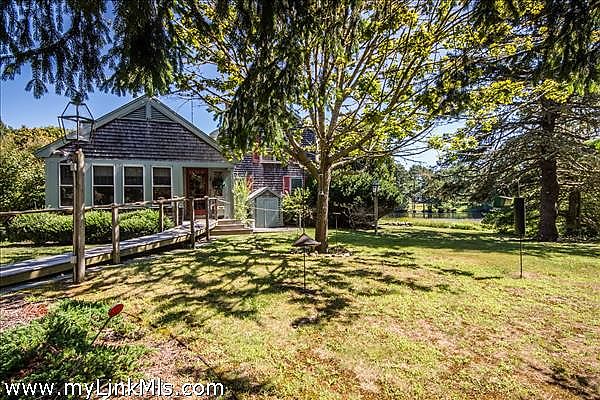 Simply enchanting! The setting is picturesque with a pond, towering trees and flowering shrubbery, privately tucked away yet less than 1¼ mile to the Edgartown Village. The existing home is set at the edge of the pond and is awaiting reimagination and renovation. Parcel will support 5 bedrooms once connected to municipal sewer. Structures are being sold “as is”.