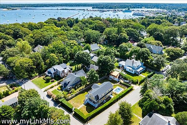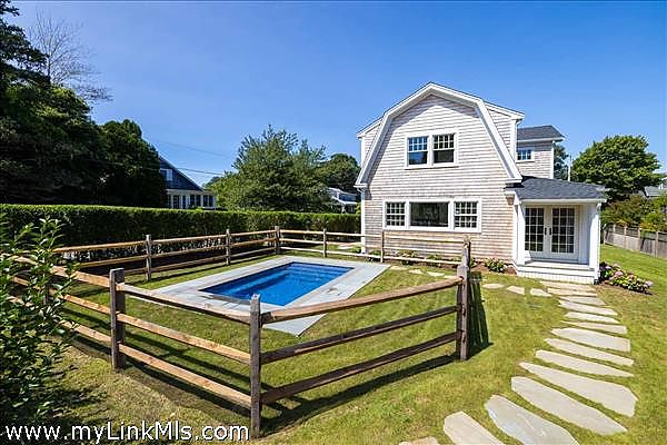 This beautifully renovated gambrel-style home in Vineyard Haven seamlessly blends classic charm with modern luxury. This pristine residence is nestled within a private, hedge-lined yard in one of Vineyard Haven’s most quiet and quaint neighborhoods. With the new heated salt-water pool, outdoor shower, lovely plantings, and beautiful gardens, no detail has been overlooked. The property also features a renovated garage with a finished second level, perfect for a creative studio. Inside, the home exudes warmth and elegance, with wide pine flooring, custom craftsmanship, and intricate wood detailing on the ceilings. The spacious living room, centered around a gas fireplace, is both inviting and stylish. The sunlit kitchen, equipped with top-of-the-line appliances and refined finishes, includes a cozy window seat that adds to its charm. The primary bedroom suite offers a serene retreat, complete with a private tile bath and access to a 2nd-floor deck. The three additional bedrooms are equally comfortable and well-appointed, providing ample space for guests. The finished lower level expands your living space further, ideal for a home theater, gym, or playroom. Spend your days soaking in this privacy that this tranquil abode provides, or take advantage of its ideal location to access the hustle and bustle of downtown Vineyard Haven where you can enjoy various galleries, shops, and fine dining. This location is also convenient to Owen Park Beach, West Chop and Mink Meadows Golf Club.