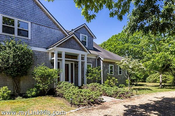 A private Edgartown home in the distinguished Boldwater neighborhood on Martha's Vineyard. This property is spread over 8.5 acres of pristine land and fruit trees and includes a 4 bedroom/3.5 bathroom main house and a 1 car garage. A winding drive leads from the road to the main residence which features a generous first floor plan with an open living room with a brick fireplace, dining room, and a kitchen with doors leading out to a welcoming screened porch. This home features a primary bedroom suite and a guest bedroom suite on the first level. Two additional guest bedrooms complete second floor. The exclusive Boldwater Association offers tennis courts, a boat landing on the Edgartown Great Pond, and a private South Shore sandy Atlantic Ocean beach. The Edgartown Great Pond is great for kayaking, paddling and boating.