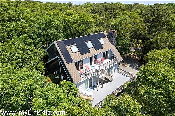 Air conditioning on the upper level and the first floor primary bedroom. Solar panels were added in the fall of 2023. With 3 floors of living space and an expansive portion of the land behind the house, this property offers so much potential for the next owners. Meadow View Farms Association is a neighborhood less than 2 miles from downtown Oak Bluffs featuring paved roads, tennis, open meadows, and even mail delivery. The septic has passed the Title V inspection for 3 bedrooms. An interested buyer should speak to an engineer about expanding the size of the septic to accommodate more bedrooms or adding a pool. The home has been well-maintained throughout its single-family ownership.