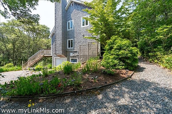 MEADOW VIEW FARM/OAK BLUFFS - This sun-drenched, contemporary reverse-style home has 3 levels of living space. Well-maintained over those years, this 3+ bedrooms, 2 full and 2 half baths multi-level home has so much to offer and boundless potential. The second-level features a bright, open kitchen, dining and living areas with cathedral ceilings and 3 sliding doors allow for the sunshine to fill the home. Open the sliders to the expansive deck and you greatly increase the living space on the upper level. A powder room completes the upper level. The first floor features the primary suite with bath, walk-in closet, air conditioning, and sliders that open to the first-floor deck. There are 2 more spacious bedrooms and a shared bath. Venture down to the above-grade lower-level and enjoy the family room, reading nook, and bonus room which adds an additional 350 sq. ft of finished space. There is also a large storage/utility room with a second power room. This space opens to the 1-car garage. Like every true island home, there is an outdoor shower. Plenty of additional storage under the deck.