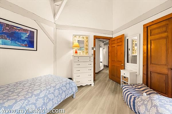 This 3-bedroom 2-bath home sits in the Down Harbor association in a prime Katama location. This charming home is an entertainer's delight with a spacious yard, a large deck, an outdoor kitchen, pool, and recently built pool house with 2 outdoor showers, 1/2 bath and a storage shed. This home features vaulted ceilings, exposed beams, and a bright kitchen with a breakfast bar open to the dining area. The living room is bathed in natural light with 2 oversized sliding doors to the deck overlooking the pool and outdoor kitchen. A bonus loft offers additional living space. The current homeowners have gone through the approval process for an attached garage with room above, for a maximum bedroom count of 4 on the property.