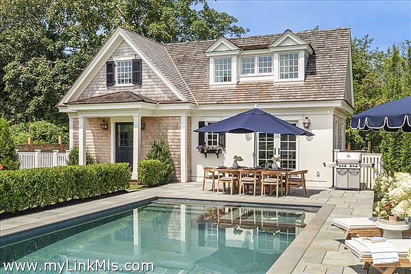 Move-In Ready – CONSTRUCTION COMPLETE - This 8-bedroom, 7.5-bath generational home, completed in 2025, is now fully furnished and move-in ready. The property includes a 6-bedroom, 5.5-bath main residence, seamlessly blending timeless elegance with modern comfort, along with a 1-bedroom, 1-bath guest house featuring its own kitchen, and a 2-car carriage house with a 1-bedroom, 1-bath living quarters. The private backyard oasis is designed for relaxation and entertainment, boasting a 16' x 32' saltwater pool and spa complemented with a pool cabana. This thoughtfully curated property is being offered fully furnished, ensuring effortless enjoyment from day one. While the window treatments for the main house are not pictured, they are included. Please note that the reported days on market reflect the construction and finishing period, and the certificates of occupancy have been issued. The property features a total gross square footage of 8,607 SF. This is a once-in-a-lifetime opportunity to own a truly extraordinary property in one of Edgartown's most desirable locations.