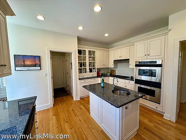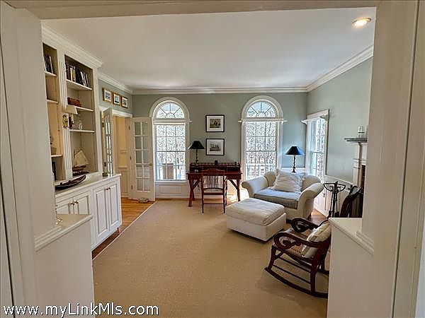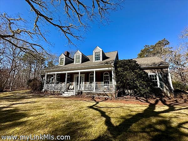 This Cape style 5 bed/ 3.5 bath home is located in a nice area privately sited on 3 acres. This home features a comfortable floor plan that includes a fully equipped kitchen with center island, custom cabinetry and granite counters. Just off the kitchen is a sunny breakfast room, a separate dining room, a spacious living room with fireplace and 2 sets of sliders to a backyard deck. There is a cozy front parlor with pocket doors, fireplace and custom built-ins. First floor primary offers an en-suite bathroom with soaking jacuzzi tub and shower. The front entry takes you to a covered porch for peaceful outdoor enjoyment. Charming features include wood floors, propane FHA with A/C, full basement and a 2-car garage. The grounds are bordered by stone walls with mature plantings and also includes a Bocce court.