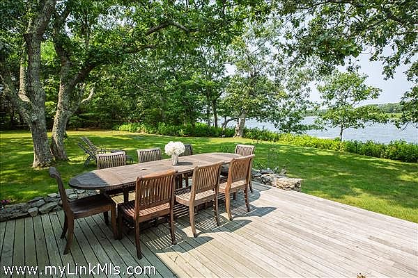 This distinguished Edgartown Great Pond compound presents an exceptional collection of features and amenities. Situated within a highly desirable, secluded enclave on Turkeyland Cove, the 4.8-acre property includes two residences, a bespoke private in-ground swimming pool, approximately 400 feet of waterfront, outstanding water views, and a private beach lot on the Atlantic Ocean. The principal dwelling offers four bedrooms, exquisite craftsmanship throughout, and a unique setting right along the water. The secondary residence was constructed in 2010 and spans 2,556 square feet, featuring two bedrooms, a three-car attached garage, and a full basement. The buildings are harmoniously integrated with meticulously designed plantings, landscape, and custom-built fencing and gates. The pool area provides a secluded oasis, with an L-shaped gunite swimming pool nicely complemented by two adjacent outbuildings. Expansive lawns gently slope towards the waterfront, and boat access to the Atlantic beach is readily available from the property shoreline. Held by the same owner for over three decades, this property represents an unparalleled opportunity.