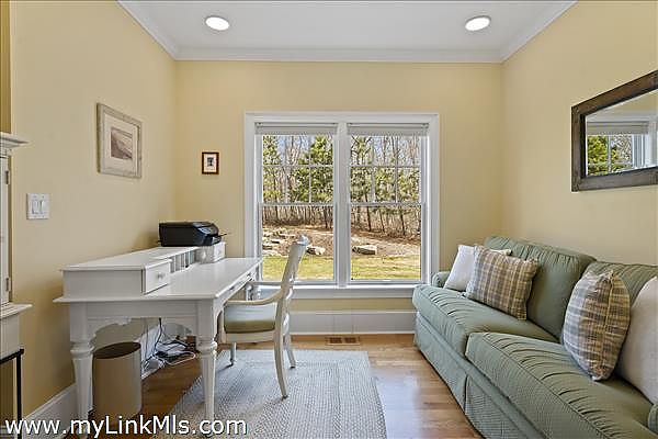 Beach access, a serene up-island setting and a terrific home make this property a must see! Situated on three acres of land just a half mile from the beach, the spacious, well-laid out and meticulously maintained home is the perfect place to relax and unwind and host family and friends. With over 3,200sf of living space that includes four bedrooms, four baths, an open concept kitchen, dining area and great room, formal dining room with butler’s pantry, a dedicated home office, laundry room, three car garage, outdoor decks, manicured lawn and private woodland, this property truly has it all. While the location affords great privacy, the shops, galleries, and restaurants in Vineyard Haven are conveniently just 3.5 miles away.