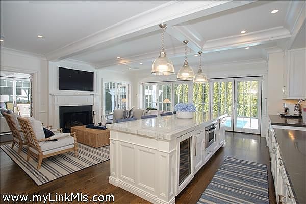 Located on prestigious Fuller Street, half a block from Fuller Street Beach lies this classically styled home. The home features an amazing family room/kitchen with an abundance of retractable glass doors facing the pool area and 2 fireplaces. There is a dining room, office, den and ground floor bedroom with private bath. The second-floor features two large en suite guest rooms and a cathedral ceiling primary bedroom with fireplace, walk in closet and expansive deck. The third floor offers a large multipurpose room with full bath. The lower level offers a game room, media room, powder room and additional bedroom with full bath. The grounds are meticulously landscaped and feature a pool, pool house with fireplace, exterior kitchen, dining pavilion and single car garage. All of the above is offered in excellent condition and tastefully decorated.