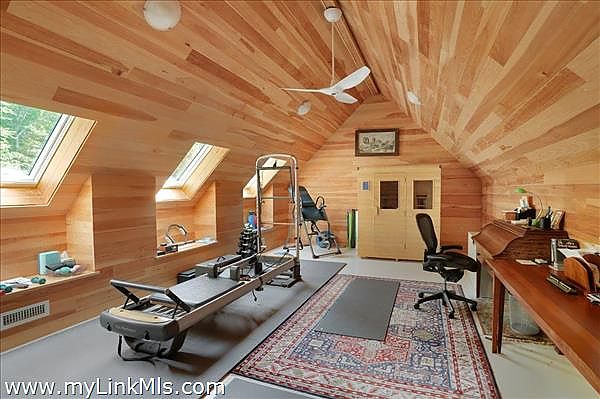 This exceptionally elegant and tranquil home in Seven Gates Farm combines contemporary architectural design with timeless high-end features for Vineyard casual, nature-inspired living. Extraordinary and rare, this move-in ready three-bedroom home with six-bedroom septic system sits on an oversized 5.3-acre parcel in Chilmark. This thoughtful layout has an easy flow, soothing tones with cypress wood paneling and accents, and combines open living spaces with separate, more secluded areas such as the TV/media room, private multi-room primary suite and private guest wing. The great room features floor to ceiling walls of windows creating a transfer of light and air from both sides of the space. The primary suite includes a separate office space, expansive walk-through closet, an architectural feature wall defining the sleeping space, beautiful bathroom of wood and glass, and access to the outdoors. Upstairs you'll find an expansive bedroom currently used as a gym and office, a cedar closet room and a large unfinished space for potential expansion. The airy guest bedroom wing is found off the entryway and includes French doors for access to the yard, built-in ceiling curtain tracks and art hanging ledges, and a full bathroom with soaking tub. The interior seamlessly blends into the exterior spaces. The artistic stonework of the front yard patio and water feature lead beyond to gardens, lawn and a trail through the wooded areas of the property. This property is part of Seven Gates Farm and enjoys the benefits of miles of coastline including three distinct beaches and two docks, 1000 acres of common land with trails weaving throughout, two tennis courts and a lovely community of neighbors. Note: 2% fee to Seven Gates Farm at closing in addition to purchase price and Land Bank fee.