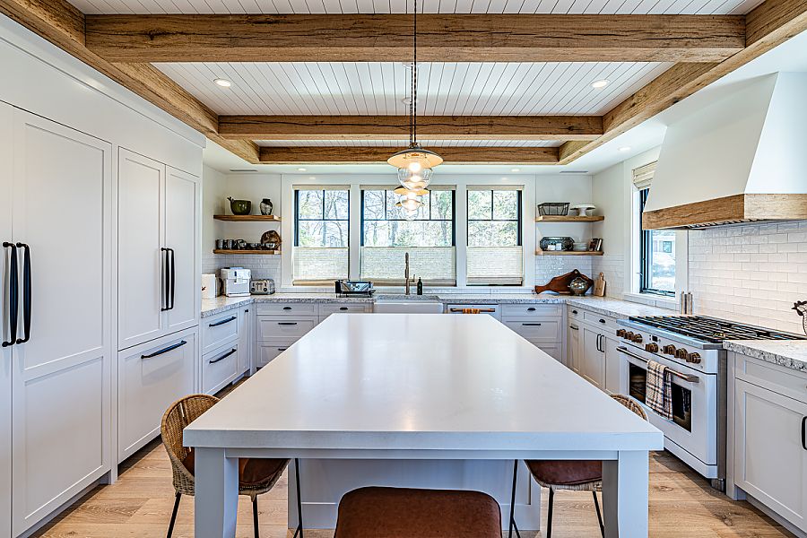 Meticulously designed by local architects Hutker & Associates in conjunction with the owners this two-level retreat seamlessly blends indoor and outdoor living. The main level boasts an open floor plan, showcasing a captivating living area with panoramic views, a chef's kitchen, and charming dining space for eight, adorned with a wall of glass sliders leading to the screened porch, equipped with cozy sofa seating and an additional dining area for 10.