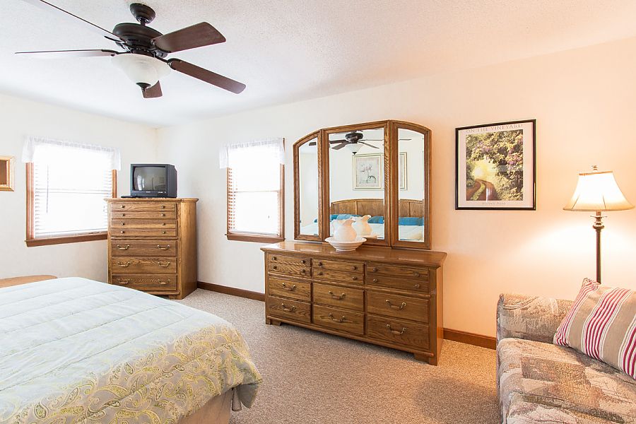 Bedroom 2: 2nd Level, 2 Queens, Ceiling Fan, TV