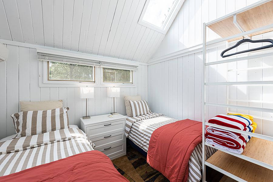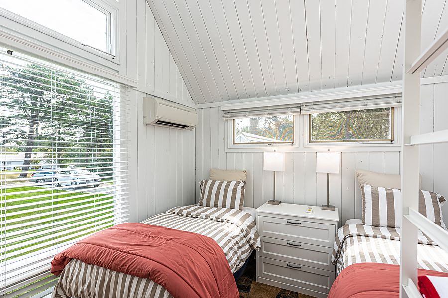 Bedroom 2: 1st Level, 2 Singles, TV, bath in hall just outside of bedroomLinens