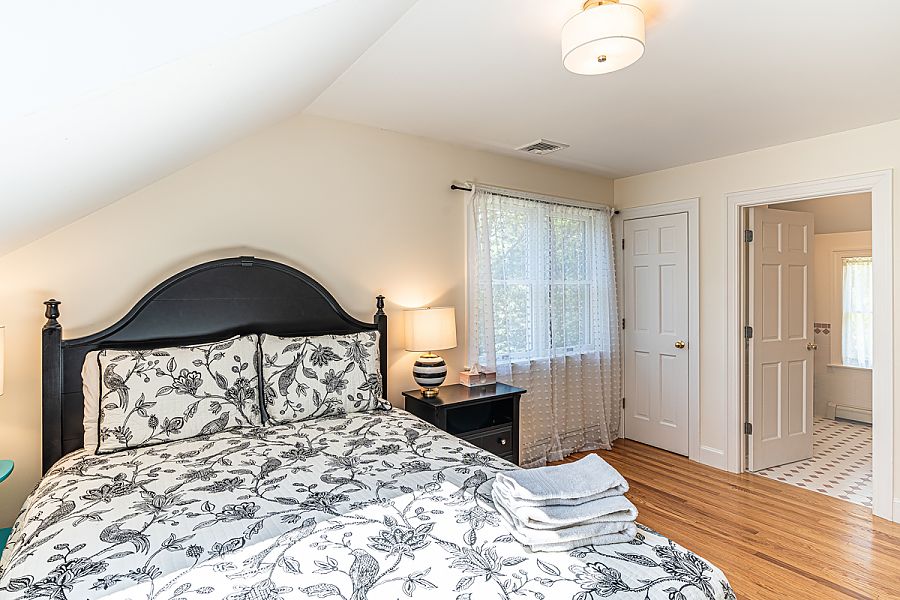 Bedroom 2: 1st Level, Queen, TV, bath in hall