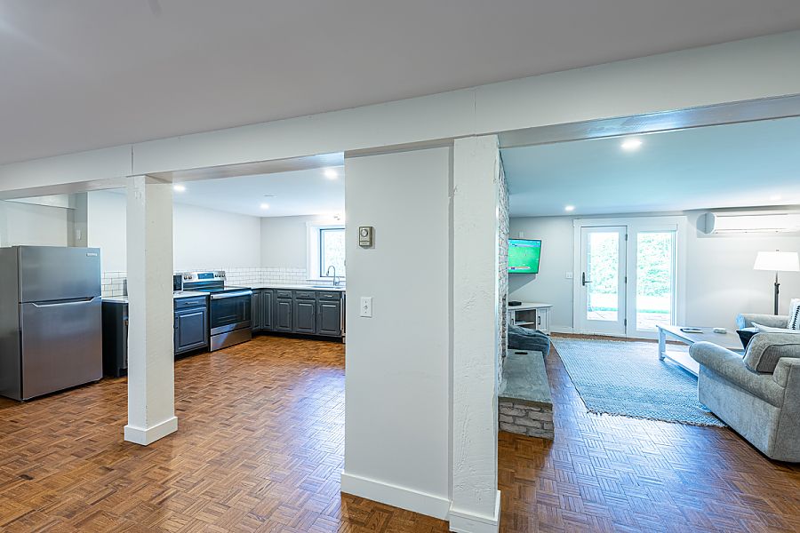 Bedroom 3: Middle Level, KingTV, A/C, Shares Bath with Bedroom 2 but also has direct access from within the bedroomBedroom 4: Lower Level, 2 sets of Bunk Beds, bath on this level