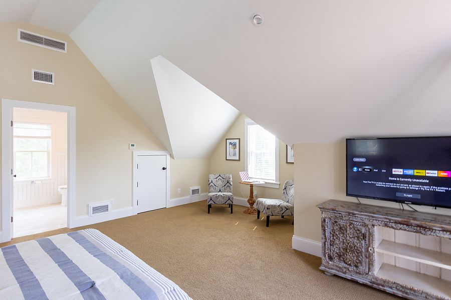 Bedroom 3: 2nd Level Queen, Above Carriage House, TV, full bath, private deck, access from inside house