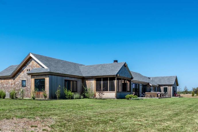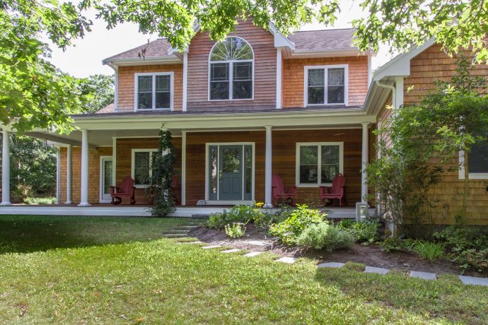 Lambert’s Cove Area: Beautiful new modern architectural farmhouse, features open living spaces with soaring cathedral ceilings and walls of glass opening out to the patio and yard areas.  Privacy and peace...Read more